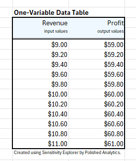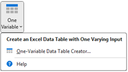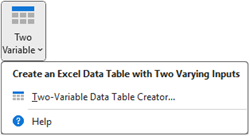 Excel data tables come in two flavors: one-variable and two-variable. The Sensitivity Explorer add-in allows you to create either one. One-variable data tables require exactly one input and any number of outputs. Two variable data tables require two inputs and a single output.