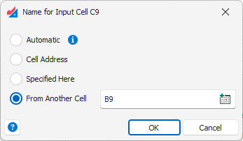 From Another Cell – Choose another cell in your spreadsheet model which contains a name for the input or output.